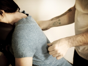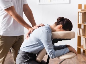 La personne qui reçoit le massage reste habillée, assise confortablement sur une chaise ergonomique. J'applique ces techniques sur le dos, les hanches, la nuque, les bras, les mains et la tête.